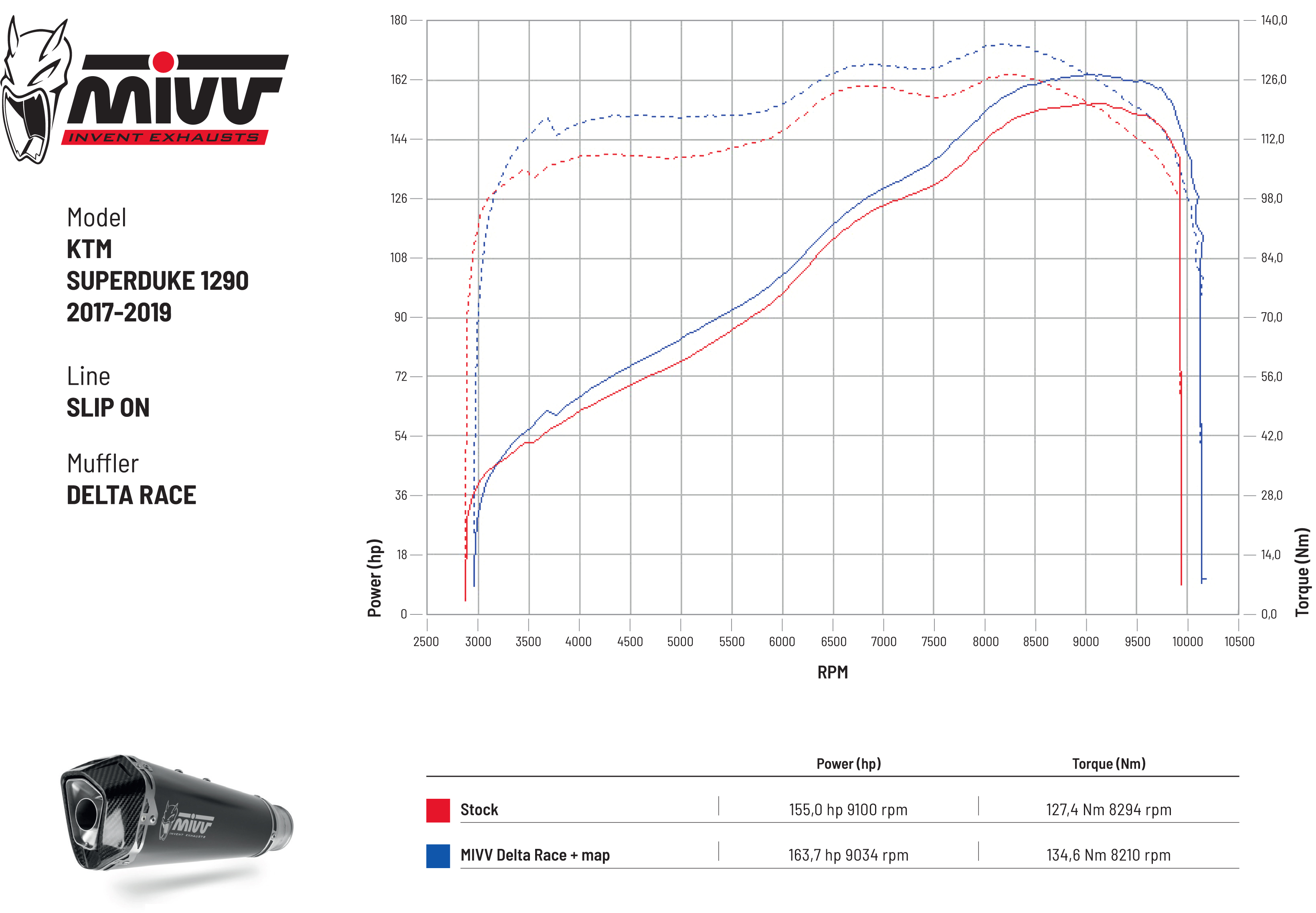 Lo scarico DELTA RACE è caratterizzato da un’esclusiva forma che, attraverso una graduale trasformazione, da conica diventa esagonale. Tanti sono i dettagli che ne rendono lo stile unico, come il fondello in carbonio twill 3K; la fascetta perimetrale con doppia rivettatura; la boccola di ingresso ricavata dal pieno, per offrire la massima precisione di accoppiamento. Sul terminale è presente il caratteristico logo Mivv realizzato tramite laser.